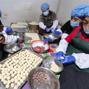 一部手机、一个支架,成为肇东市盛禾谷记食品加工部农民致富的“新农具”,通过线上接单、线下发货,为小黏豆包“蒸”出增收新渠道。眼下,室外寒风瑟瑟零下30多度,白雪覆盖着黑土地。但在位于肇东市里木店镇金山村的盛禾谷记食品加工部的家庭式生产间内,却是冬闲人不闲的繁忙景象,空气里弥漫着传统手工制作黏豆包的独特面香和芸豆香味。拿块面按个坑,放入豆馅、封口攥实、反复转圈,一个个圆滚滚的黏豆包就包好了。村民王洪霞和同村姐妹们这种家门口的打工方式增加了收入。“我们从一入冬就开始在这里用手工‘笨’方法包黏豆包,由冬闲变成了冬忙,一小时赚十块钱。这不农历虎年马上要到了,我们正在加班加点生产,好保证节日期间黏豆包的市场供应,希望再赚个2000多元钱,好去多办点年货。”村民王洪霞喜滋滋地说。