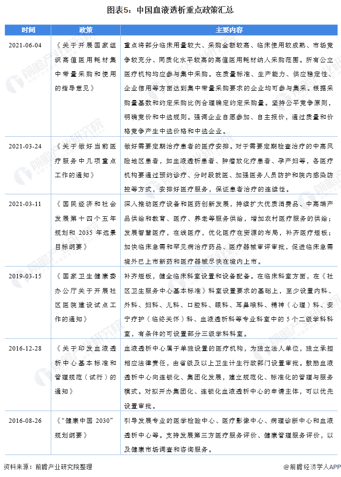 行业政策背景:政策加持,血液透析发展前景广阔