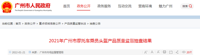 广州市市场监管局抽检摩托车乘员头盔产品21批次 7批次不合格