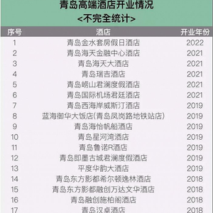 仅2022年开年,青岛金水套房假日酒店便已开业,赶上了全套房酒店的“小趋势”,2021年8月,青岛瑞吉酒店成为山东省首家奢华酒店。