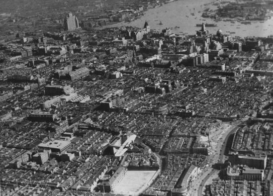 1934年上海市中心区域航拍 图源 | Airspacemag | China National AviationCorporation (CNAC 中国航空公司)档案资料