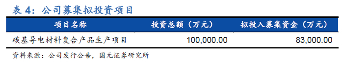 本次发行募集资金总额不超过8.3亿元(含),扣除发行费用后的募集资金净额将投资用于碳基导电材料复合产品生产项目。
