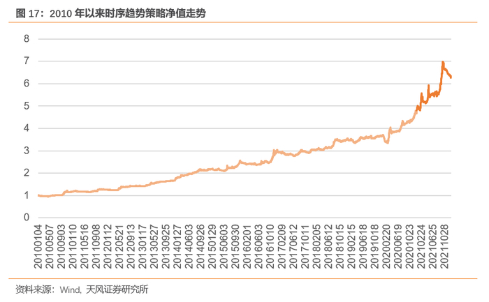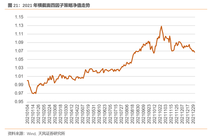 下面我们观察多品种时间序列通道突破策略(以下简称时序趋势策略,详见《天风证券商品期货CTA专题报告(十二):趋势策略在时间序列和横截面上的应用》)和横截面四因子策略(详见《天风证券商品期货CTA专题报告(十一):信号来源与交易合约选择下的横截面策略改进》)在手续费上调事件频发的2021年的表现,并尝试提出应对措施。