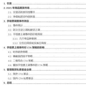 本文回顾了2021年商品期货市场的整体运行情况,总结了CTA策略的表现,从定量角度研究了手续费调整事件对商品期货价格和CTA策略的影响,并尝试提出应对措施。