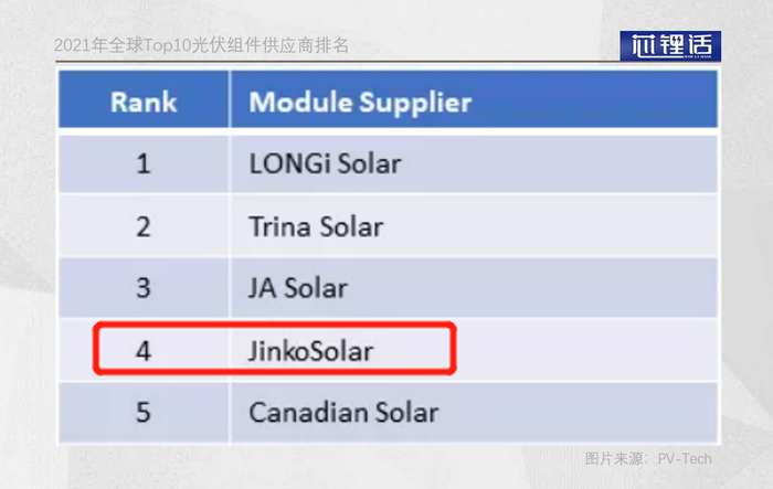 晶科能源组件出货量被隆基股份超越并非偶然,在1月13日PV-Tech公布的《2021年全球Top10光伏组件供应商排名》中,晶科能源再次被天合光能和晶澳科技所超越,已经滑落至全球第四名。