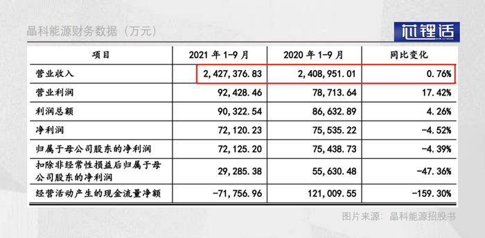 一般而言,市场地位衰落往往伴随公司业绩的下降。从晶科能源发布的招股书中,投资者也能看出它的颓势。