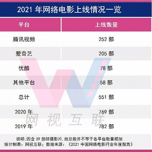 1月24日,中国电影家协会网络电影工作委员会联合云合数据、爱奇艺、腾讯视频、优酷等共同发布了《2021中国网络电影行业年度报告》。网视互联(ID:wxs360)结合相关数据对《报告》进行了重点解读,并整理出了这份“2021网络电影成绩单”。对这一年来全网上线的网络电影以及行业变化趋势进行剖析,以供行业参考。