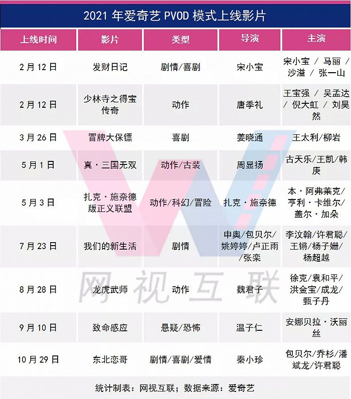 2021年5月,爱奇艺在PVOD模式的基础上推出了“云影院”,片方能够以12元至30元不等的价格对作品进行自主定价。不仅如此,对于头部项目,爱奇艺可以全额投资,头部成片平台可以进行保底。