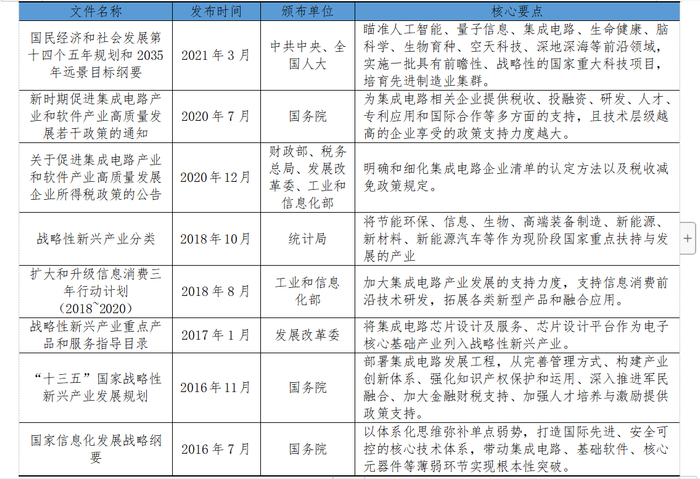 表3 “十三五”时期以来集成电路相关领域的重要政策