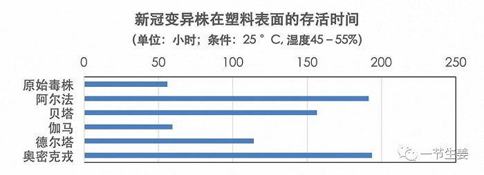 具体结果是这样的:在塑料表面,原始毒株只能存活56小时,而奥密克戎可以存活193.5小时。