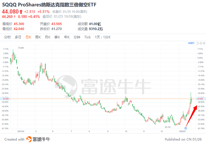$ProShares纳斯达克指数三倍做空ETF(SQQQ.US)$:当纳指下跌1%,则SQQQ上涨3%。