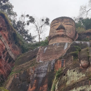岷江、青衣江和大渡河三江汇流处,凌云山峰峦峭壁之间,一尊通高71米的弥勒石佛坐像雕凿其中。