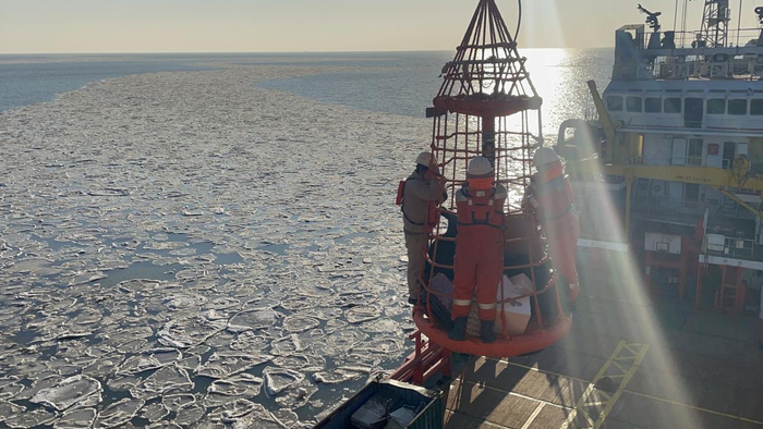 “好,起,慢慢放、慢慢放,停!”水手长张武刚正指挥上下平台的物料吊运,联系破冰船持续破冰,确保平台安全生产稳定。即使年关将至,仍有近百名工人与家人隔海分离,守护着地下油气开采与运输,保障国家能源安全。