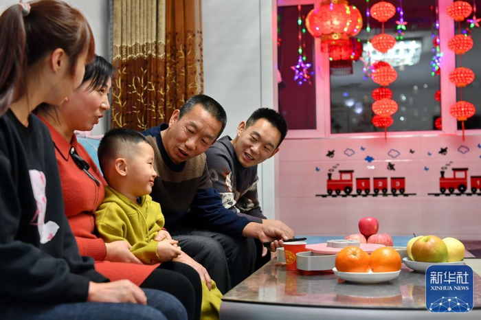 ↑1月25日,李太红(右)和儿子、孙子在一起。