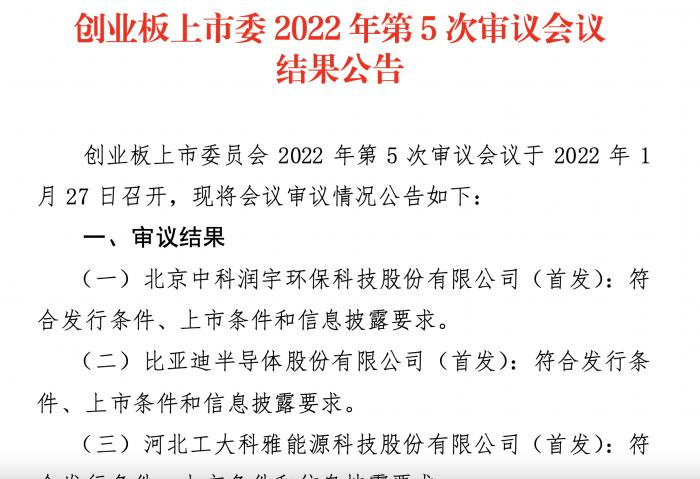 21世纪经济报道记者宋豆豆 报道 1月27日,根据创业板上市委消息,一度中止上市的比亚迪半导体股份有限公司(以下简称“比亚迪半导体”)在深交所创业板首发过会。如若顺利,比亚迪半导体将是比亚迪旗下第一家独立上市的子公司,也是国内车芯第一股。