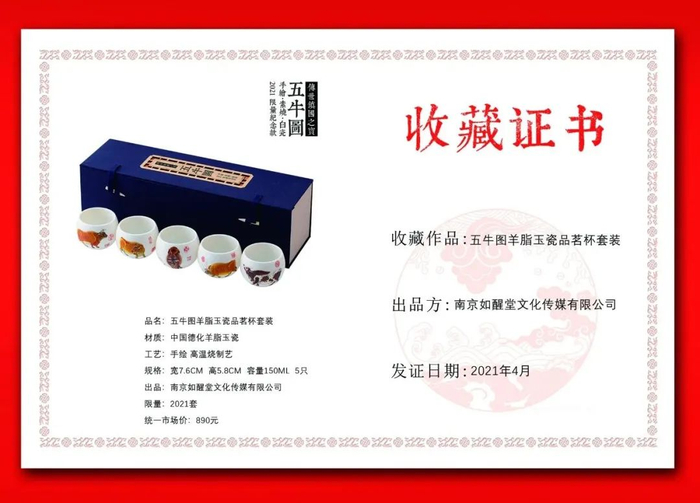 今天就给大家推荐一个可以拿在手上时刻赏玩的“实用国宝”:五牛图羊脂玉瓷品茗杯套装。