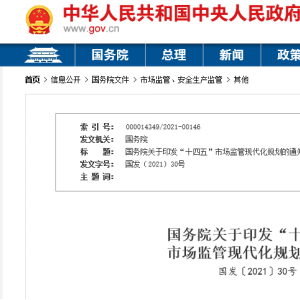 未来五年,全国市场监管工作怎么干?国务院日前印发《“十四五”市场监管现代化规划》,对推进我国市场监管现代化作出全面部署。