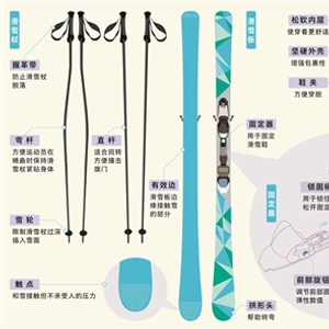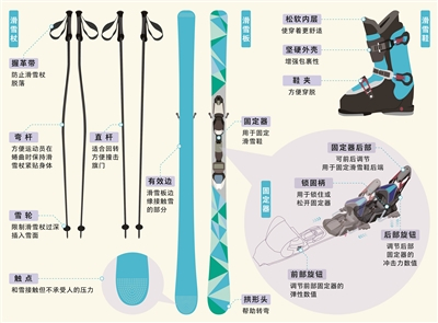 让没有翅膀的人类体验飞翔的感觉,关键是高山滑雪器材的助力,特别是滑雪板、滑雪杖、滑雪鞋、固定器4件主要器材。