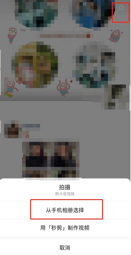 2、打开朋友圈后点击从相册选择。
