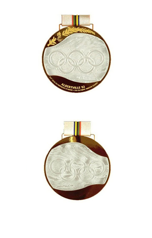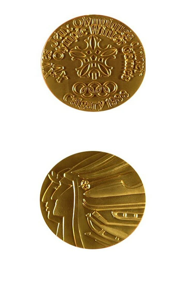 金牌正面刻了一片雪花和一个奥运五环,并刻有 “第十五届冬奥会 卡尔加里1988”的英法文字样。