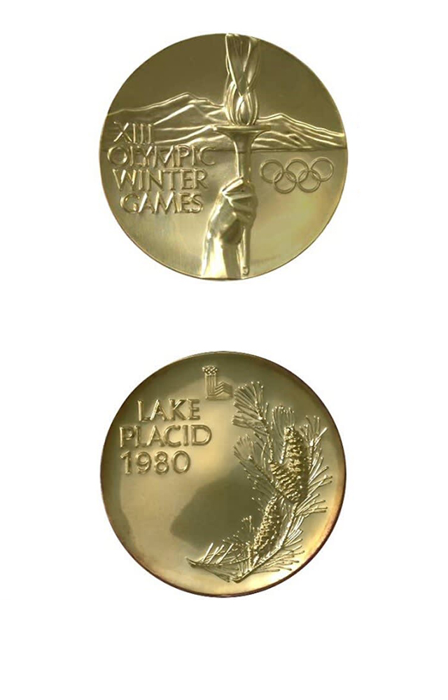 背面刻有杉树枝、本届奥运会的会徽和“Lake Placid 1980”字样。