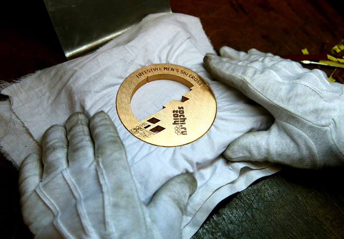本届冬奥会的奖牌完全是手工制作,以水晶为原材料制成,镶嵌金、银、铜,一枚奖牌需要35人的流水线。
