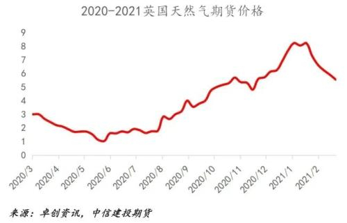目前全球主要的天然气期货市场是欧美,我国目前并没有建成天然气期货市场,这使得国内天然气没有形成国内的基准价格,容易受到国际天然气价格波动的影响。本次欧洲天然气价格暴涨对于我国大宗商品价格带来了一定上涨压力,去年十月末,动力煤价格从去年年初的650元/吨涨到了1908元/吨,涨幅高达193%。前不久LNG期货正式获得证监会立项批复,正在加快推进上市工作。LNG期货上市以后,有助于形成我国天然气基准价格,减少国际天然气价格波动对国内大宗商品价格的影响。