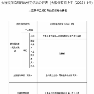 原标题:中美联泰大都会人寿大连分公司违法被罚 虚构展业业务