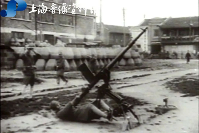 十九路军运用老式武器向入侵的日本军机开炮。(资料图,相关影像为上海音像资料馆馆藏)