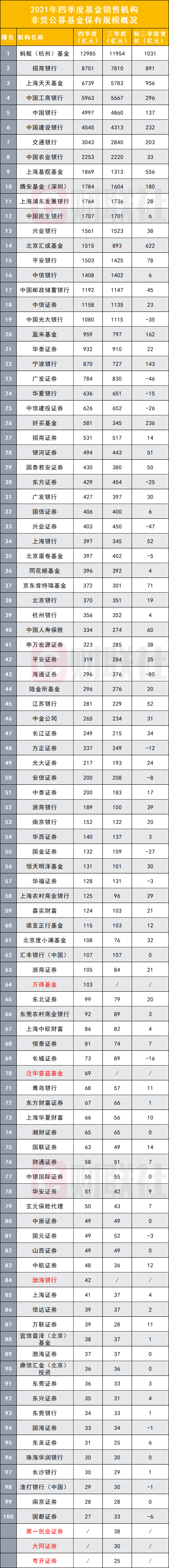 最新公募销售保有规模百强榜:蚂蚁非货逼近1.3万亿,中信成唯一非货千亿券商,三匹黑马出没是何来头?