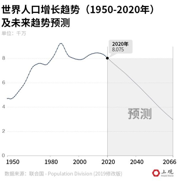 全球人口最近一次的增长波峰发生在20世纪 60年代,这是战后的弥补性繁荣,以后,全球的生育率便开始缓慢下滑。