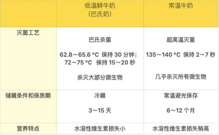 常温牛奶与低温鲜牛奶(也叫巴氏奶)的主要区别是杀菌方式、储存条件和时长,营养差别并不大。