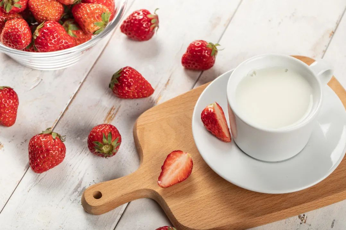 牛奶可以和鸡蛋、榴莲一起吃,也可以和豆浆、巧克力、草莓、芒果……一起吃。