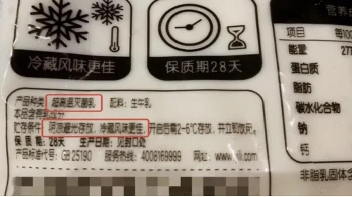 而且,透明包装袋会让人误以为是需要低温保存的巴氏奶,但有些产品,其实是常温就能保存的普通牛奶。