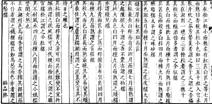 《山海经南山经》(景明刻本《古今逸史》版) 记载:“……用稌糈米祠之。”“稌”即为糯稻,“糈”则是是祭神专用的精米,指定要用精选的糯米。这种精选米粒的传统,从祭神延伸到后世皇室的食米