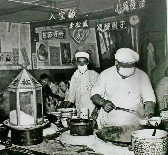 20世纪50年代,上海老字号“老松盛”店内的八宝饭招牌