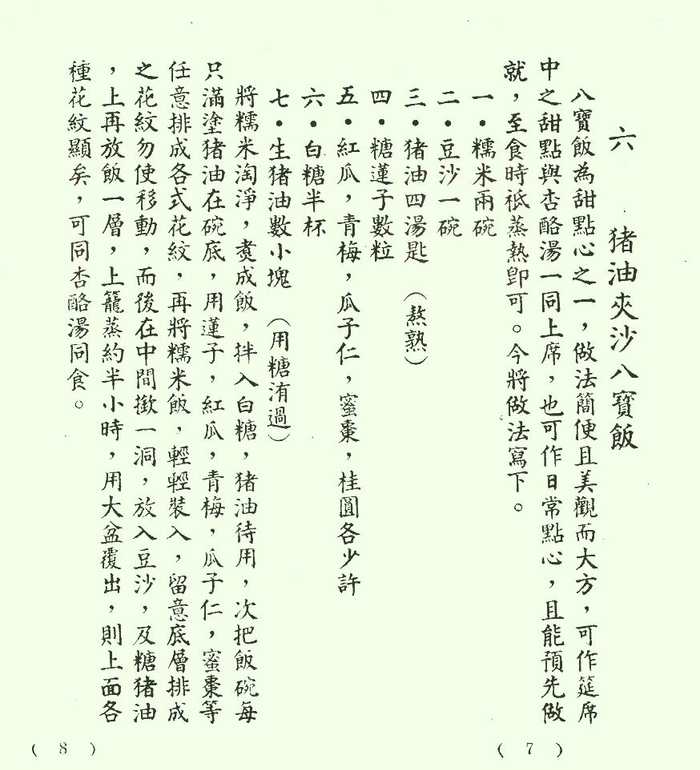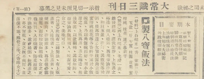 20世纪30年代,上海出版的《俞氏空中烹饪》杂志中刊载的“猪油夹沙八宝饭”制作工艺