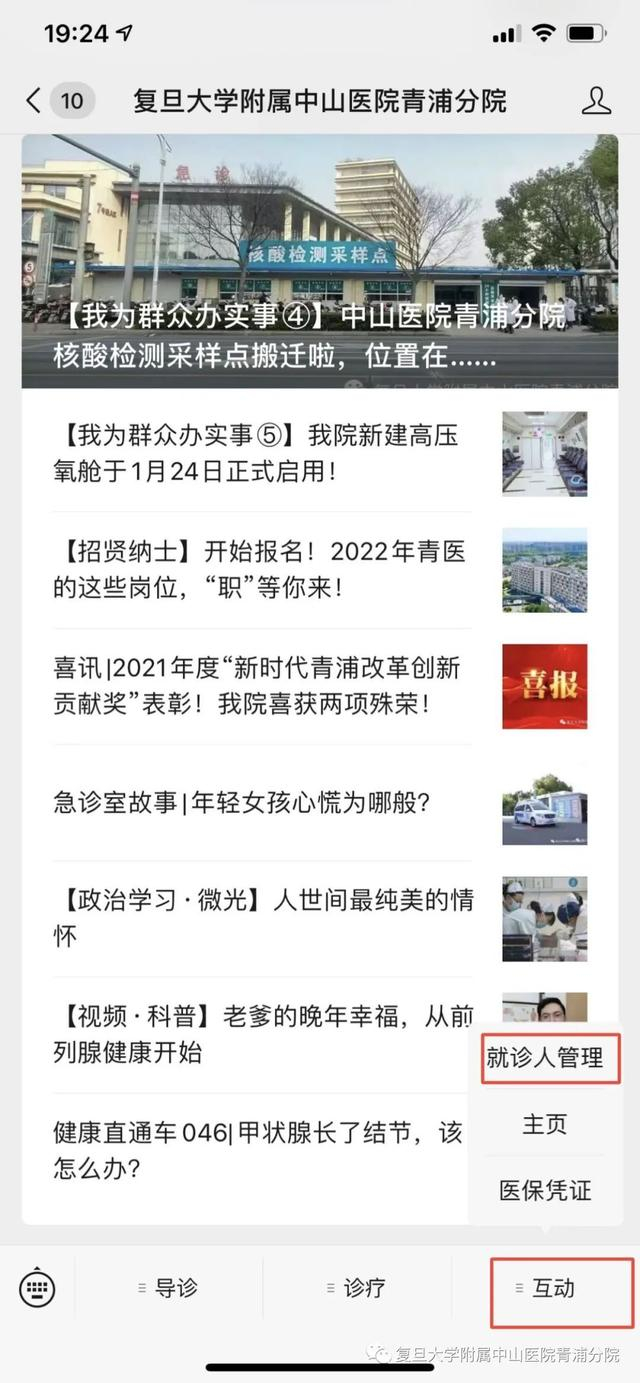 微信搜索“复旦大学附属中山医院青浦分院”公众号或支付宝搜索“复旦大学附属中山医院青浦分院”生活号并关注。