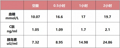 表2. 馒头餐C肽胰岛素释放试验