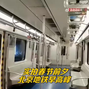 实拍春节前夕北京地铁早高峰:人流稀少 车厢空出较多座位