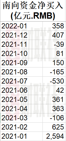 截止2022年1月26日数据,南向资金首月流入358亿元人民币。由于春节假期,南向通自1月27日起关闭,2月7日(星期一)起恢复开通港股通服务。