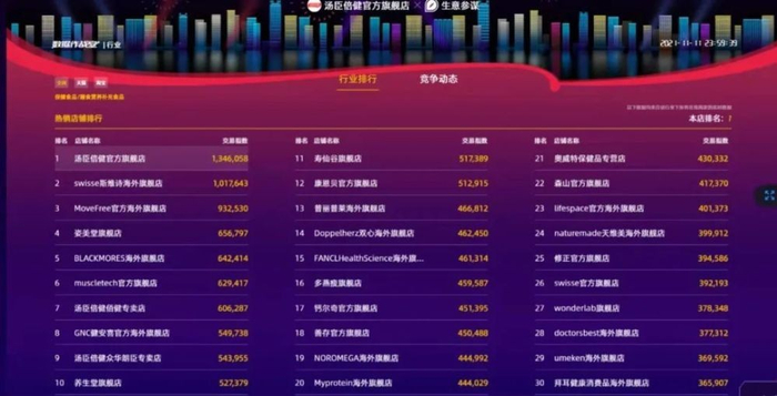 如何在[拼搏]与[健康]中找到平衡?解决这一问题的市场正在快速发展。国家统计数据显示,中国膳食营养补充剂市场从 2017 年的 1482 亿元增长至 2020 年的 1847 亿元,年均复合增长率达7.75%。2020 年双十一期间,膳食营养补充剂第一次拥有独立的榜单。