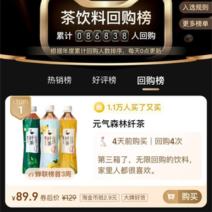 近日,元气森林出品的无糖植物茶饮纤茶在天猫的表现不俗。数据显示,截止1月29日,元气森林纤茶已经蝉联天猫茶饮料回购榜榜首三周,该榜单根据年度累计回购人数排序。