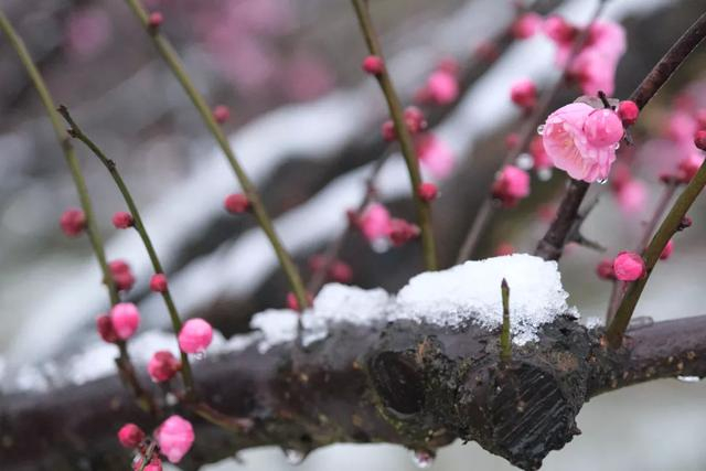 趁着难得的雪景,赶紧来花开海上欣赏美丽的梅花吧。
