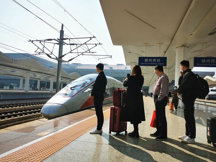 2021年12月10日,赣深高铁正式开通运营。高铁开通后,从“革命老区”江西赣州到深圳仅需2个小时左右,成为沿线旅客首选的出行方式。今年春节,赣深高铁迎来了它的“春运首秀”,预计40天内开行69对客车和4.5对临客,发送旅客约46.6万人次。