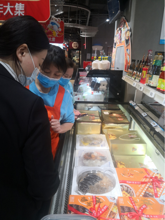 大年二十六,证券时报记者在深圳福田皇庭广场盒马鲜生看到,来咨询年夜饭预制菜的人络绎不绝。而超市里,也专门有一个区域打出了年夜饭提前购的广告,现场的工作人员告诉记者,订年夜饭预制菜的人最近一周特别多,大部分住附近的人都选择在 31号当天,到线下店加热好自提,也有人会选择快递派送。