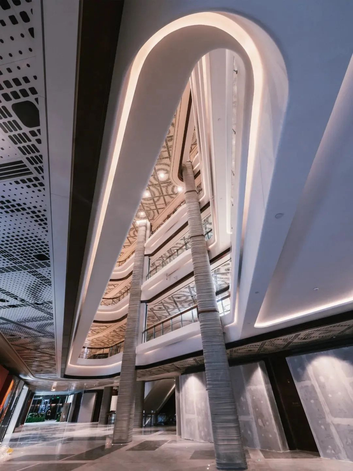 连接整栋商场的特色生命柱就像是树木的根,稳稳地贯穿其中,就好像未来的城市森林。