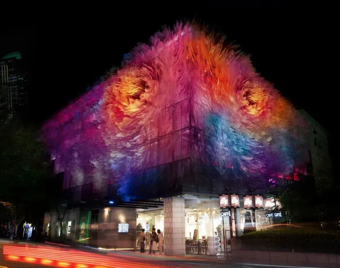 与众不同的动态之美,使建筑在每一个时刻都呈现出不同的光影变化。华灯初上时,金色的帘幕在灯光的照耀下奢华万分,尽显华美之姿。
