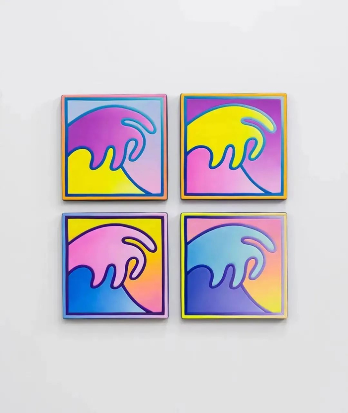 展览上,迷人的洛杉矶天空、绚丽的加利福利亚日落、海滩与色彩多变的海浪,家乡的自然风景是他色彩灵感的来源。