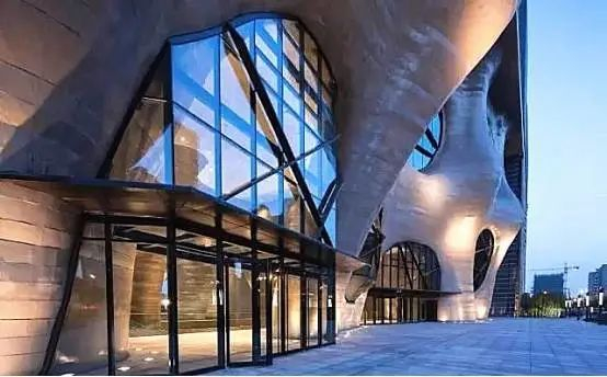 建筑的设计灵感来源于中国传统戏剧舞台,外立面有三层独立、而且可以移动的“流苏”帘幕。
